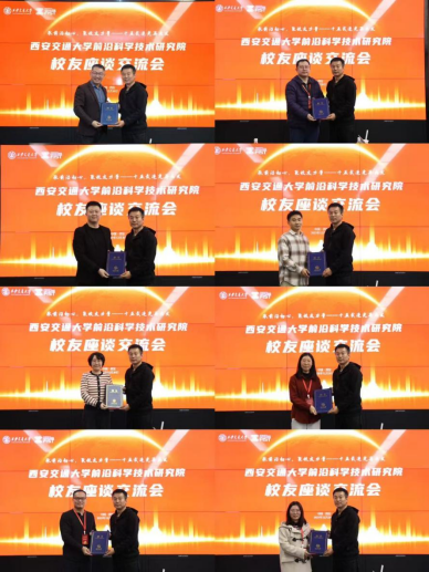 校友座谈会交流环节,西安交通大学生物医学工程专业2014级硕士、西安交通大学第二附属医院教授闫瑾,分享了从前沿院基础研究走向应用的科研心路,强调学院培养的扎实功底让自身终身受益。西安交通大学材料物理与化学专业2014级硕士、湖南大学教授李俊,回顾了在实验室攻坚克难的日夜,感恩导师的悉心指导塑造了自己的学术品格。西安交通大材料科学与工程专业2012级硕士、美光(西安)半导体有限公司高级工程师申雅静,则从产业视角,阐述了前沿院培养的创新思维如何在工程实践中解决关键问题。随后,在场校友们也分享了各自的奋斗故事,言语中充满了对母校的眷恋与自豪。校友经历虽各不相同,却共同印证了学院“基础厚、重交叉、求创新”的育人成效。