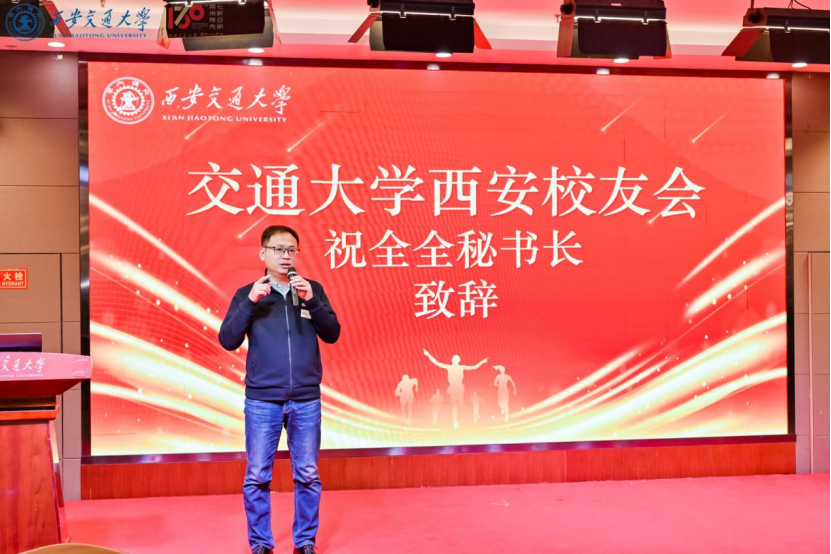 交通大学西安校友会秘书长祝全全与大家分享了校友会成立背景及发展现状,他表示:“西安校友会是我们校友群体共同建设的组织,也是校友们共同的家,希望通过校友会的平台与广大校友深度链接、互相赋能。”