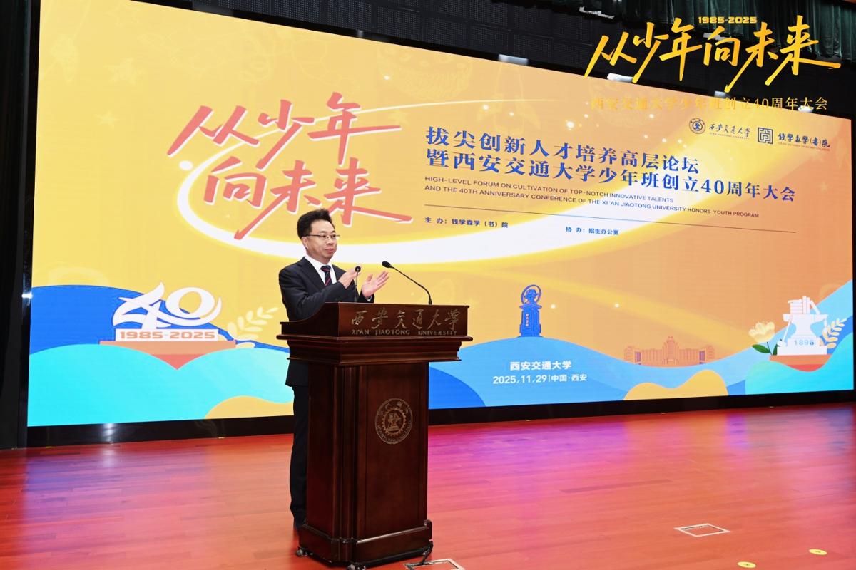 何玉麒在讲话中肯定了西安交大少年班40年来为陕西教育事业和国家人才培养作出的重要贡献,希望西安交大坚持立德树人根本任务,继续深化教育教学改革,培养更多拔尖创新人才,助力教育强国建设。