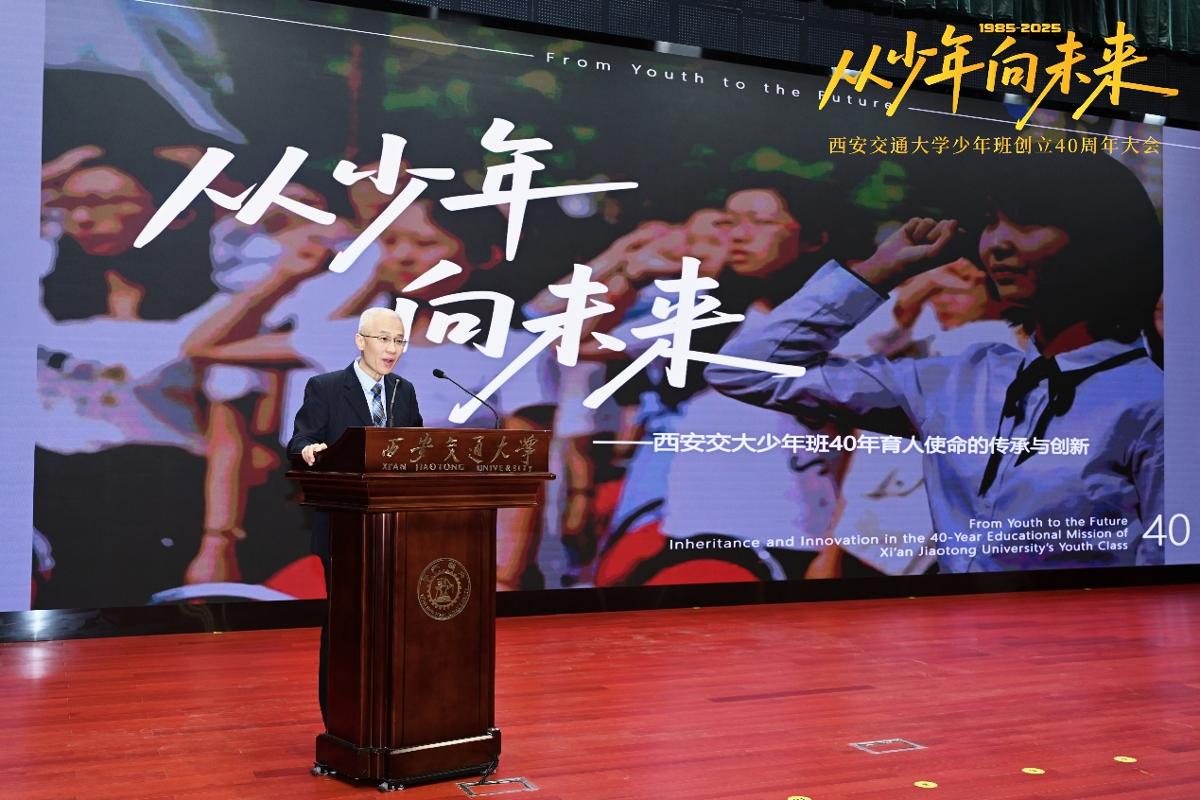 张立群在总结致辞中指出,四十年的实践启示我们,真正的教育创新,必须尊重学生个性和潜能、遵循教育规律、面向未来需要。从少年班出发,西安交大已构建起“强基—卓越—交叉”拔尖创新人才培养三级学科体系、“学段衔接—本研贯通—产教融合”培养模式体系,形成了多元化、多层级的拔尖创新人才培养方阵和涵盖选拔、培养、评价与发展的全链条育人机制,构筑起面向未来、开放协同的人才培养新格局,为中国教育改革积累了宝贵经验,贡献了交大智慧。