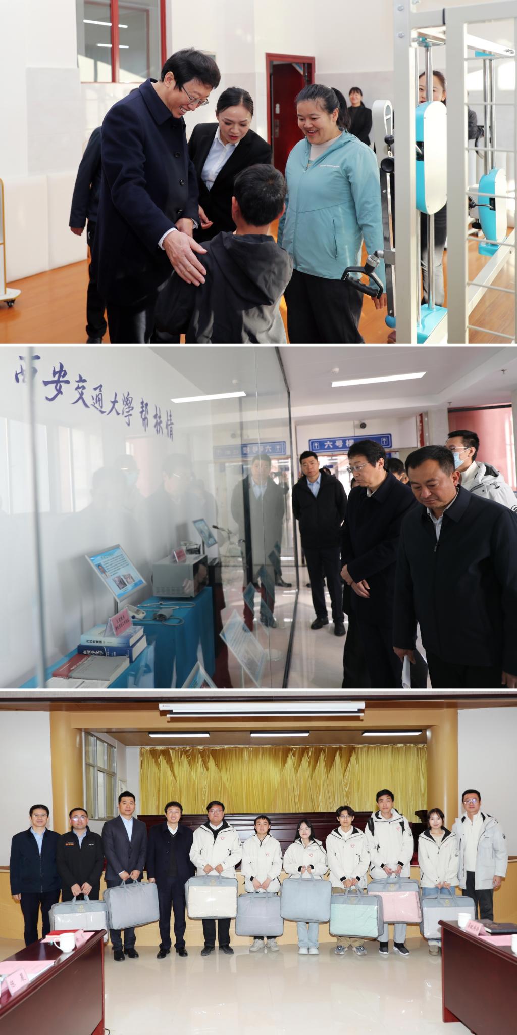 调研期间,张立群一行深入基层开展实地走访。在施甸县特殊教育学校,他仔细察看教学设施,并与教师交流,全面了解学校的办学条件、师资配置以及学生的学习与成长状况。在施甸县人民医院,他调研了医院建设情况,详细了解西安交大王雪、罗俊、赵小利等医疗专家在技术指导、学科建设与人才培养等方面开展的帮扶事迹与突出贡献。张立群还看望了学校在施甸县挂职干部和研究生支教团成员,关切询问大家的工作生活情况,对大家扎根一线、担当奉献的精神给予了充分肯定。他表示,一路所见所闻,深切感受到了施甸县委县政府在促进教育公平、提升医疗服务水平、增进民生福祉方面所做的积极努力,也感受到了西安交大师生与施甸干部群众在这片土地上共同奋斗结下的友谊硕果,学校将继续传承弘扬脱贫攻坚精神和西迁精神,持续发力,久久为功,携手施甸绘就乡村振兴壮美画卷,为推进共同富裕作出新的更大贡献。