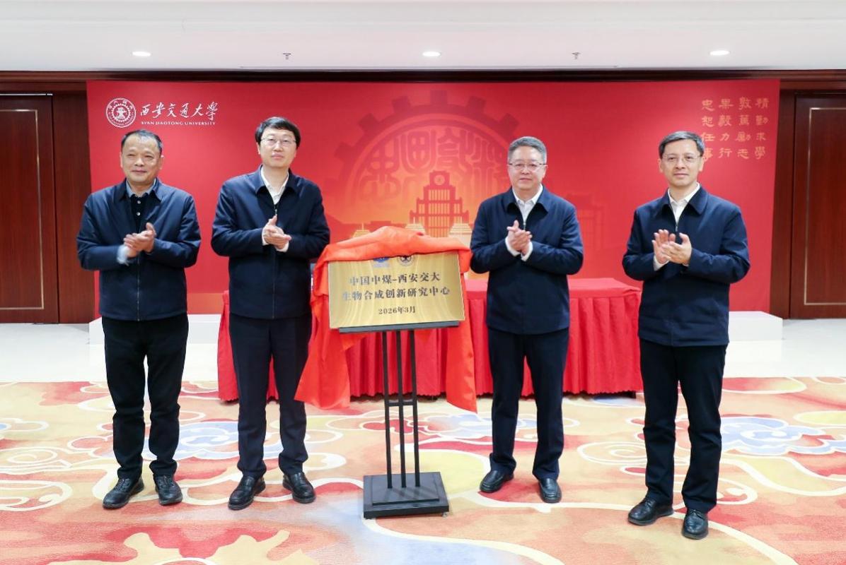张立群、王树东、马博虎、倪嘉宇共同为中国中煤-西安交大生物合成创新研究中心揭牌。