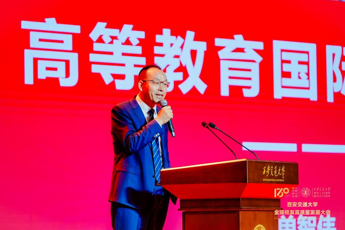 西安交通大学校长、中国工程院院士张立群代表学校向全球交大人致以诚挚问候。他表示,130年来,交大始终与民族复兴同频共振。从盛宣怀“自强首在储才,储才必先兴学”的创校初心,再到1956年“向科学进军,建设大西北”的西迁壮举,一代代交大人用行动诠释了“与党和国家、与民族和人民同呼吸、共命运”的使命担当。在新的历史起点,学校依托中国西部科技创新港,推进产学研深度融合,积极服务国家发展大局。交大人始终以实干成就梦想,用奋斗书写答卷,交大校友创办及任高管的企业超过万家,其中上市公司50余家。校友航天员张陆在空间站为母校挥毫送福,各地校友点亮地标,这份深情令人动容。