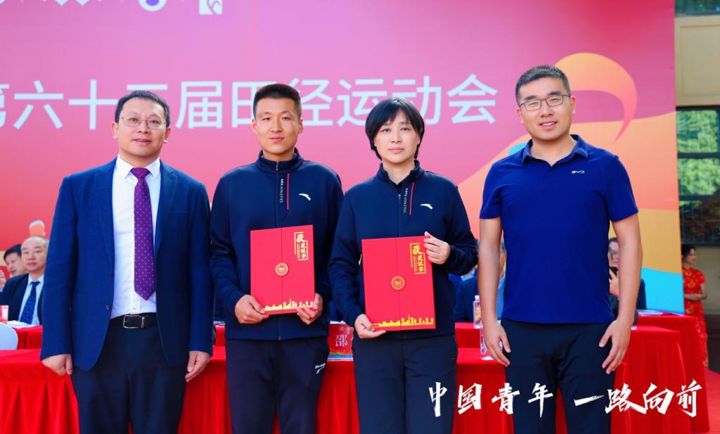 马博虎、王欢、李臻、张岩松、党俊肖为年度优秀运动员颁奖。
