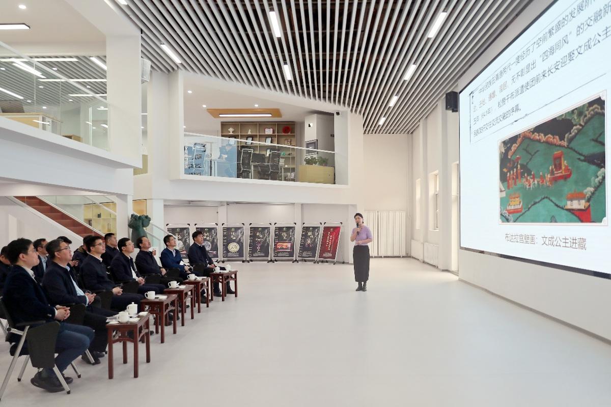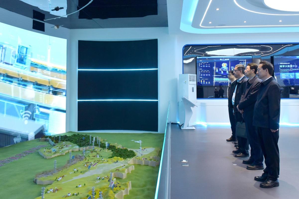 张立群一行观摩了铸牢中华民族共同体意识教育展示课,考察了中华民族共同体建设与边疆治理智能实验室、AI驾驶舱实验室等,听取了相关学院关于“《中华民族共同体概论》下地方文脉梳理系统”“蒙古族传统服饰纹样数据平台”“文理交叉学科赋能中华民族共同体建设研究”等项目的专题汇报,深入了解了内蒙古师范大学以人工智能赋能边疆治理提质增效、推进中华民族共同体建设的创新实践和突出成效。内蒙古师范大学党委书记李树林,校长张军出席。
