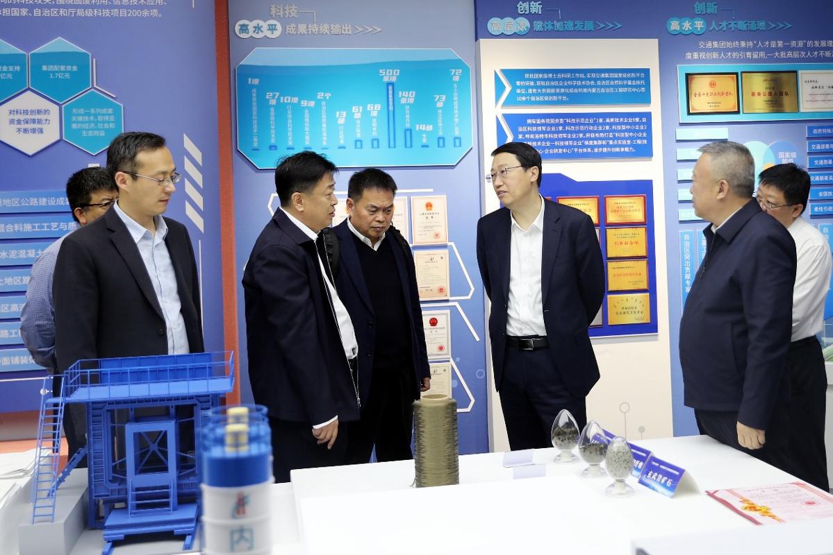 洪海对张立群一行表示欢迎,并介绍了集团改革发展、产业布局、科技创新及双方科研合作项目等方面的情况。他表示,长期以来,双方依托新型低碳公路材料院士创新中心,持续推动大宗固废循环利用和高性能功能性路用新材料应用方面的研发攻关及成果转化。希望双方依托各自优势资源,拓宽合作领域,重点围绕新能源综合利用、大宗固废循环转化、低空技术研发创新等方面,加快新质生产力成果转化,持续为自治区特色优势产业和交通行业创新发展作出更多贡献。
