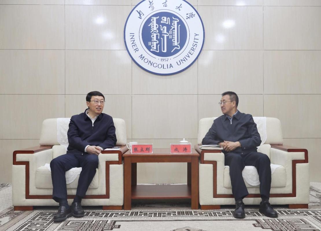 在内蒙古大学,张立群与校党委书记成涛座谈。双方围绕深化校际合作、共筑科教高地等进行了深入交流,达成广泛共识。