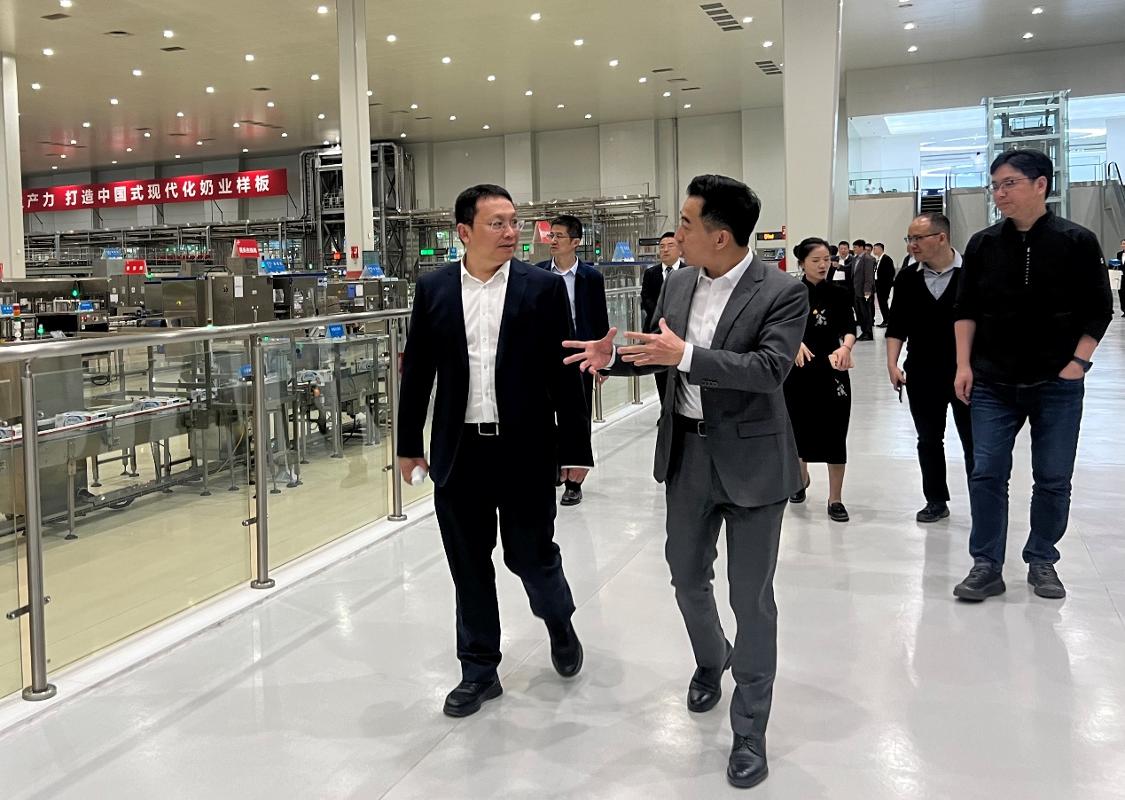 在伊利集团,邵金友一行调研了伊利智造体验中心、国家乳业技术创新中心,实地了解了企业在智能制造、产品研发及全产业链质量管控等方面的最新成果与创新实践。伊利集团副总裁李建坤、付莉陪同。西安交大电气学院、人居学院、生命学院、化工学院、仪器学院、医学部相关教师参加。