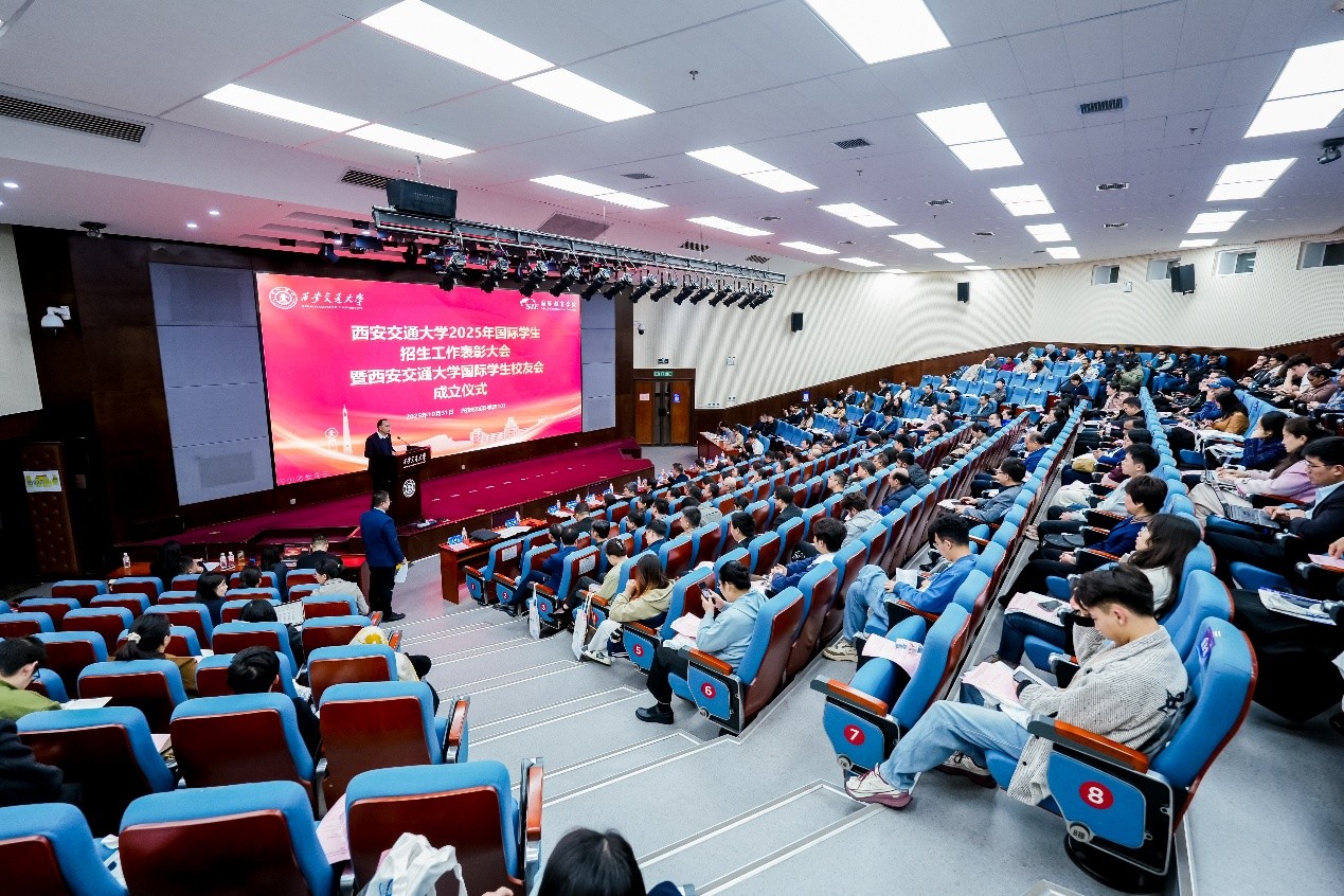 西安交通大学国际学生校友会成立new!2025-11-0510月31日,西安交通大学国际学生校友会成立仪式举行,校长张立群出席大会并致辞,校党委常委、副校长单智伟主持大会。陕西省人民政府外事办公室、西安市人民政府外事办公室、陕西省教育厅对外合作与交流处、西安市公安局出入境管理局、西安市委宣传部外宣处等校外单位嘉宾,学校教育对外开放工作领导小组成员单位负责人、各学院院长及国际学生招生工作代表、国际学生校友代表等100余人参会。张立群校...