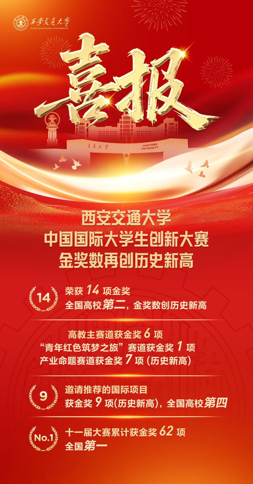 2025-10-1610月12日至15日,中国国际大学生创新大赛(2025)全国总决赛在郑州举行。西安交通大学再创佳绩,共斩获14项金奖,创历史新高,金奖总数位列全国高...