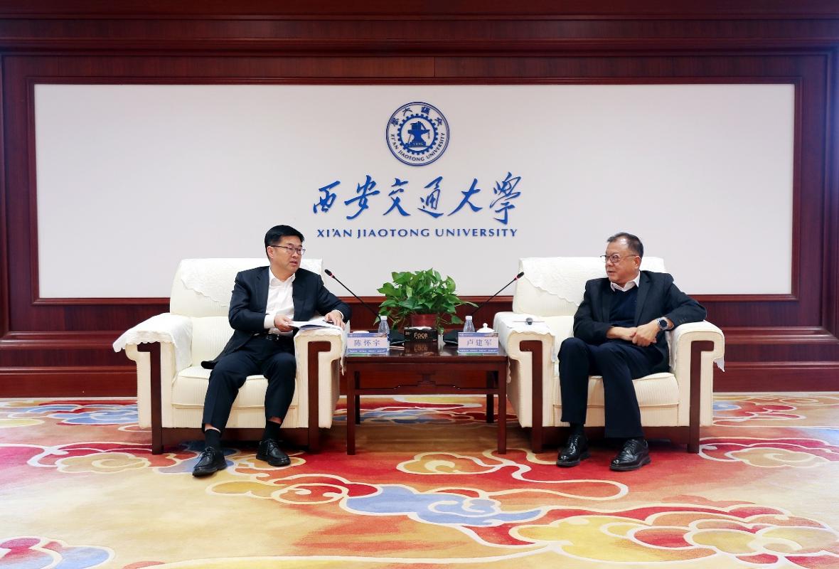 2025-11-2011月18日,中国进出口银行党委书记、董事长陈怀宇带队来创新港调研。西安交通大学党委书记卢建军会见陈怀宇一行。进出口银行党委委员王晓,西安交...